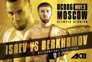 Ook de Welterweight titel staat op 5 Mei in Moskou op het spel. Mukhamed Berkhamov (13-1) die wordt gezien als een van dé gezichten van de organisatie neemt het op tegen Beslan Isaev (37-9). Berkhamov won al zijn zes wedstrijden voor de organisatie. En deed dit allemaal voortijdig. Berkhamov is een zeer complete vechter. Dit bewees hij nog maar eens in zijn twee meest recente gevechten voor de organisatie. Zo versloeg hij in Dushanbe de sterke Sharaf Davlatmurodov via Armbar Submission in de tweede ronde. Hierdoor mocht hij voor de titel vechten tegen Kampioen Brett Cooper. Cooper had niets in te brengen en ging zwaar KO in de tweede ronde. Berkhamov zou vervolgens zijn titel verdedigen tegen UFC veteraan Albert Tumenov. Echter raakte Berkhamov geblesseerd. Nu staat hij tegenover Beslan Isaev. Isaev is een man met over de 40 Pro-MMA gevechten. Isaev is er al bij sinds het vijfde ACB evenement en won zijn laatste twee wedstrijden voor de organisatie. Isaev is net als Berkhamov een absolute finisher.