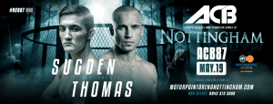 De ACB organisatie heeft vandaag wederom twee gevechten bekend gemaakt voor de ACB 87 op 19 Mei 2018 in de Motorpoint Arena te Nottingham, Engeland. Het grote Engelse talent Dominic Wooding zal zijn opwachting maken in de Bantamweight divisie tegen zijn landgenoot Dean Garnett. Eveneens zal Regis Sugden zijn lang verwacht debuut maken voor de ACB organisatie, hij neemt het op tegen Welshman Azi Thomas.