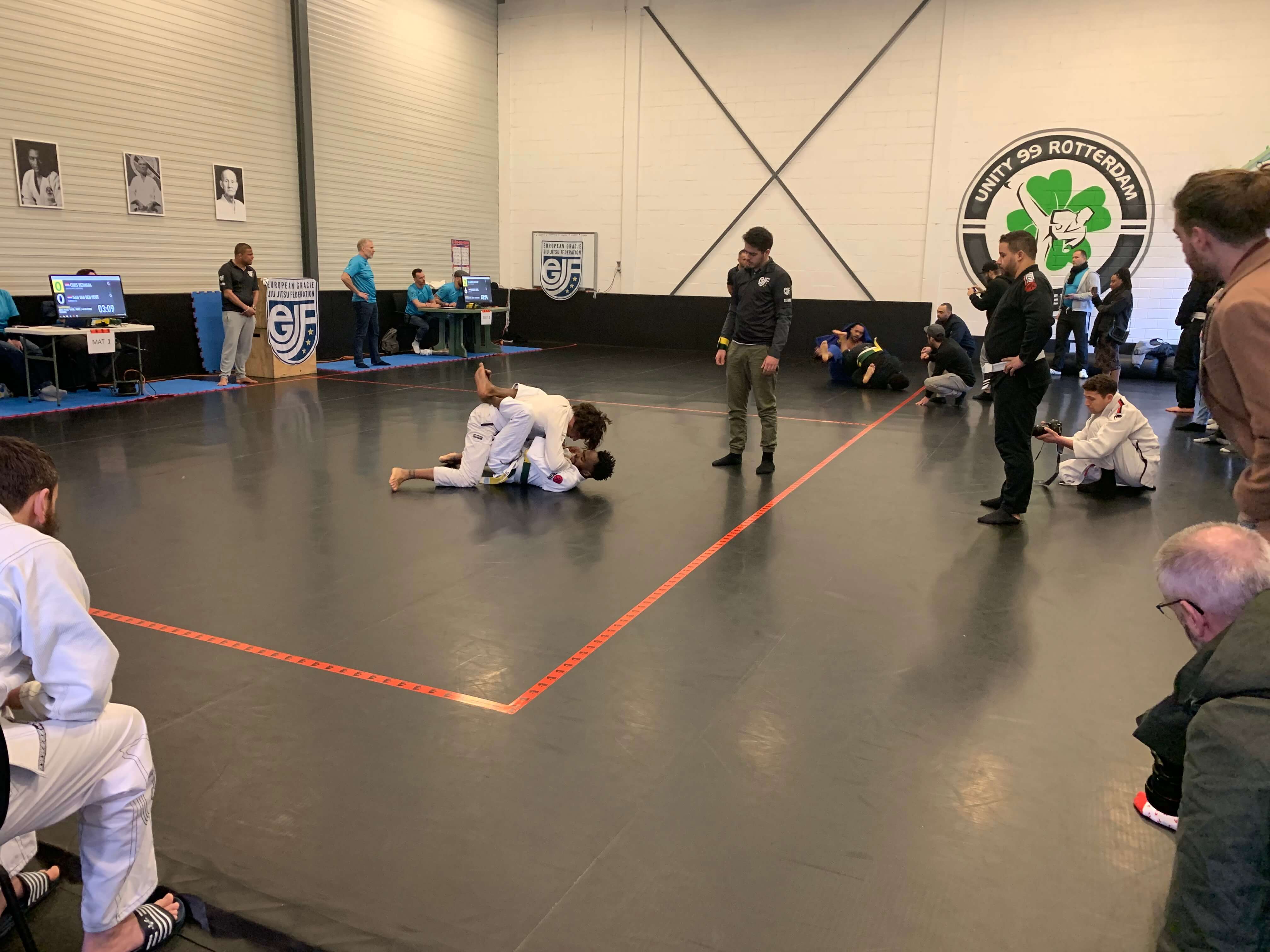 Waar in het kickboksen wedstrijden mooi zijn opgedeeld in N-, C, B- en A-klasse, wordt bij BJJ ingedeeld op de kleur van de band. Hierbij is het idee hetzelfde als bij kickboksen, namelijk dat mensen van ongeveer gelijk niveau tegen elkaar kunnen strijden. Zo is er een steeds groter wordende groep aan beginnende BJJ beoefenaars die enthousiast aan wedstrijden deelnemen. In Rotterdam stonden er zondag ongeveer 100 deelnemers op de mat van de Vechtsportacademy van Unity99.