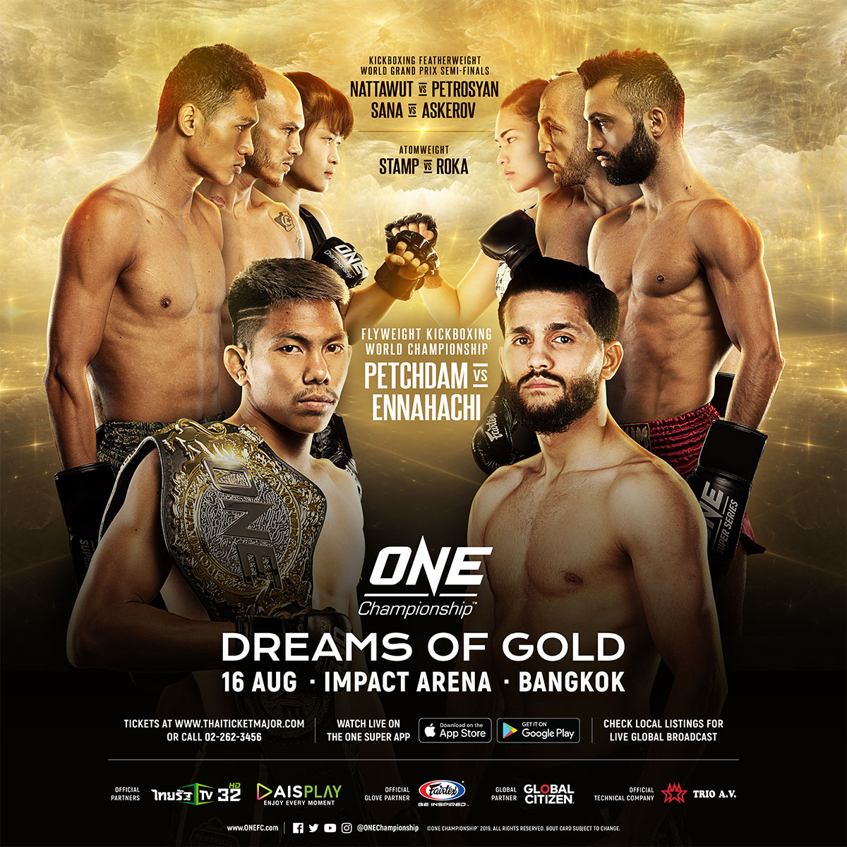 De Marokkaanse Nederlander Ilias Ennahachi zal op 16 Augustus 2019 zijn debuut gaan maken voor de ONE Championship organisatie. Ennahachi krijgt tijdens zijn debuut meteen de kans om de ONE Championship Flyweight Kickboxing titel te winnen. Ennahachi treft kampioen Petchdam Petchyindee Academy in de Impact Arena te Bangkok, Thailand. Eveneens staan de twee halve finales van het Kickboxing Featherweight toernooi op het programma en maakt ONE Kickboxing en Strawweight Kampioene Stamp Fairtex haar opwachting in het MMA.