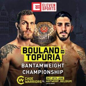 Brian Bouland (MMA 7-1/CW 2-0) is een Belgische MMA vechter die al sinds 2012 te vinden is in het Pro MMA circuit. De man uit Brussel wist in zijn eerste jaar als prof een record op te bouwen van 3-0. Hierna volgde twee partijen bij het Zwitserse HIT FC. Bouland won zijn debuut partij, maar verloor zijn daarop volgende partij. Tussendoor pakte hij nog een overwinning tegen Jamie Pritchard in Engeland. Vervolgens tekende Bouland bij de Cage Warriors organisatie. Daar imponeerde hij in September 2017 door de Ier Darren O’Gorman via TKO in de tweede ronde te verslaan. Bouland vestigde vervolgens zijn naam bij de organisatie in Maart 2018 door Josh Reed (die net van een titelgevecht afkwam) te verslaan via KO in de eerste ronde. Nu mag Bouland zelf voor de titel vechten. Deze titel is vacant aangezien Nathaniel Wood recent een contract bij de UFC tekende.