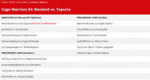 Bekijk hier de line-up tot dusver voor Cage Warriors 94 in Antwerpen.