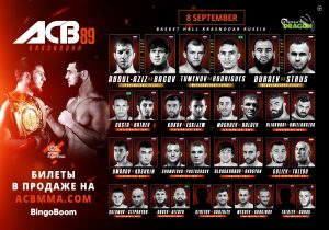 Zojuist vond in de Basket Hall te Krasnodar, Rusland het 89ste evenement plaats van de ACB organisatie. Maar liefst drie titels stonden op het spel tijdens die evenement. Zo zette Lightweight Kampioen Abdul-Aziz Abdulvakhabov zijn titel op het spel tijdens het Main Event tegen Ali Bagov. Eveneens werd in het Co-Main Event gestreden om de vacante Welterweight titel tussen Albert Tumenov en Ciro Rodrigues. Tot slot zette ook Albert Duraev zijn Middleweight titel op het spel, hij nam het op tegen de Pool Piotr Strus.