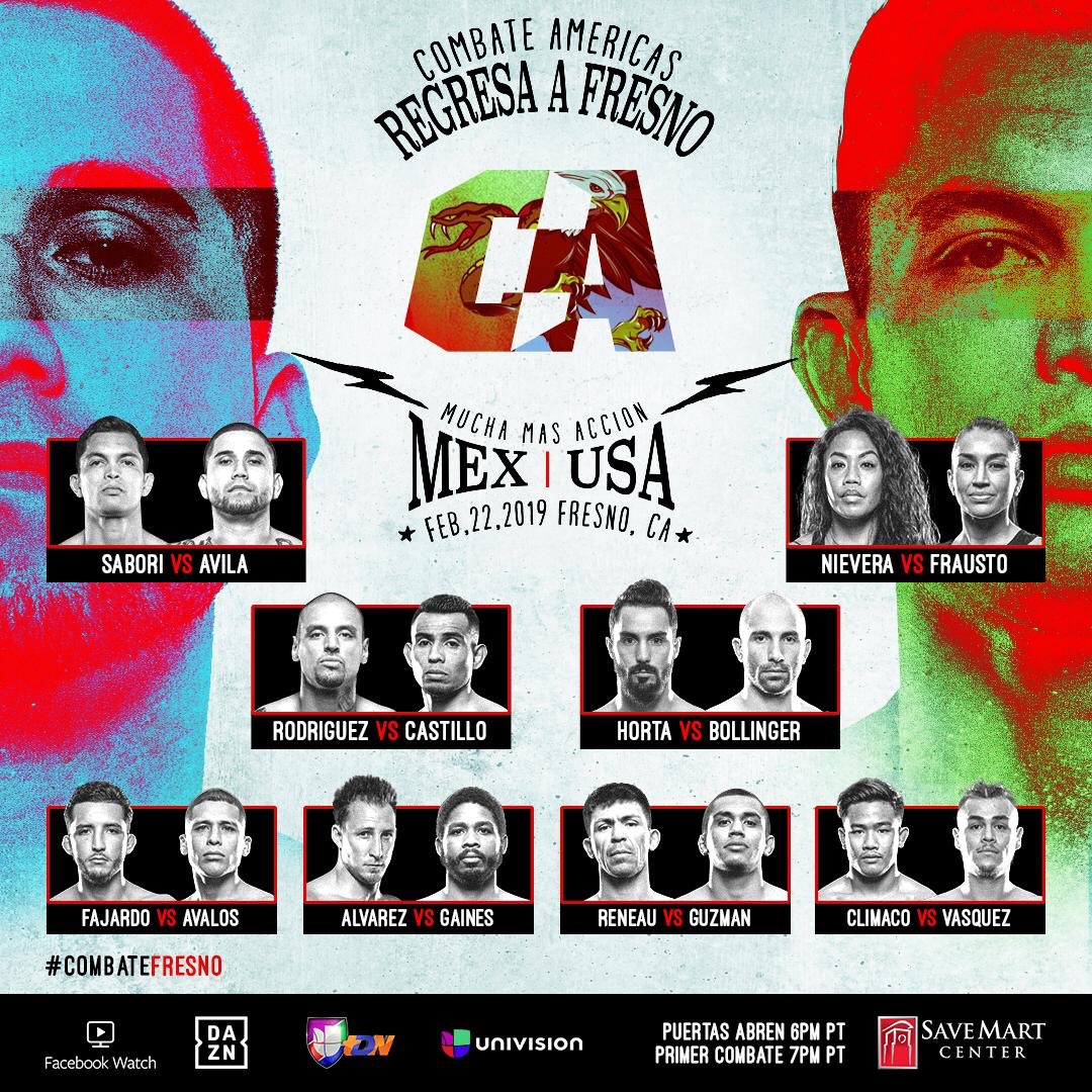 Afgelopen nacht vond in het Save Mart Center te Fresno, Californië het 31ste evenement van de Combate Americas organisatie plaats. Tijdens het Main Event nam Pablo Sabori het op tegen Anthony Avila. Eveneens stond tijdens het Co-Main Event voormalig Bellator MMA Kampioene Zoila Frausto ingeroosterd tegen DWTNCS veterane Jaimee Nievera.