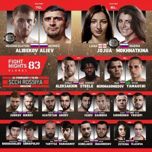 Zojuist vond in het SCCH Rossiya te Moskou, Rusland het 83ste evenement plaats van de Fight Nights Global organisatie. Tijdens het Main Event nam Lightweight Kampioen Magomedsaygid Alibekov het op tegen uitdager Akhmed Aliev. En tijdens het Co-Main Event vond de Finale plaats van het Women’s Bantamweight toernooi. Marina Mokhnatkina nam het op tegen Liana Jojua voor de allereerste Women’s Bantamweight titel.