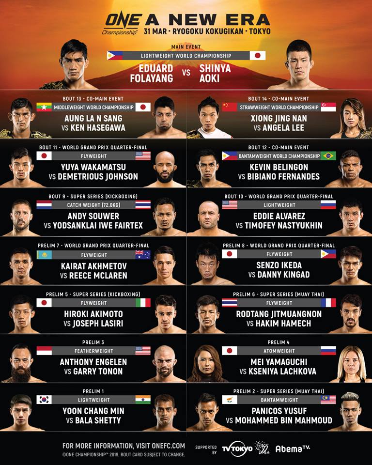 Zojuist vond in Ryogoku Kokugikan te Tokyo, Japan het debuut van ONE Championship in Japan plaats. De card was gevuld met liefst vier titelgevechten plus het debuut van de voormalig UFC Kampioenen Demetrious Johnson en Eddie Alvarez vonden plaats. Tot slot stonden ook twee Nederlanders op de card. Andy Souwer nam het op tegen Yodsanklai Iwe Fairtex in een rematch terwijl Anthony Engelen het opnam tegen BJJ expert Garry Tonon.