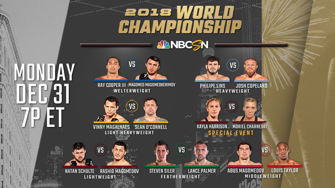 Zojuist vond in het Hulu Theater at the MSG het grote PFL 2018 Championship evenement plaats. Tijdens dit evenement werd in zes gewichtsklassen gestreden om de allereerste PFL titel. Alle zes winnaars kregen ook nog eens het prijzengeld van 1 miljoen dollar per persoon. Eveneens maakte tweevoudig Olympisch judo Kampioene Kayla Harrison haar opwachting tegen Moriel Charneski.