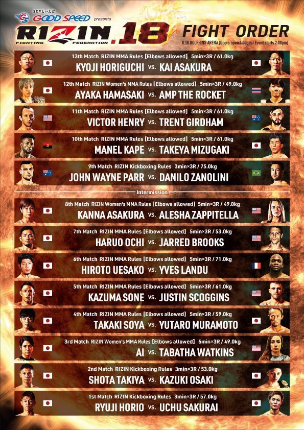 Uitslagen : RIZIN FF 33 : Saitama