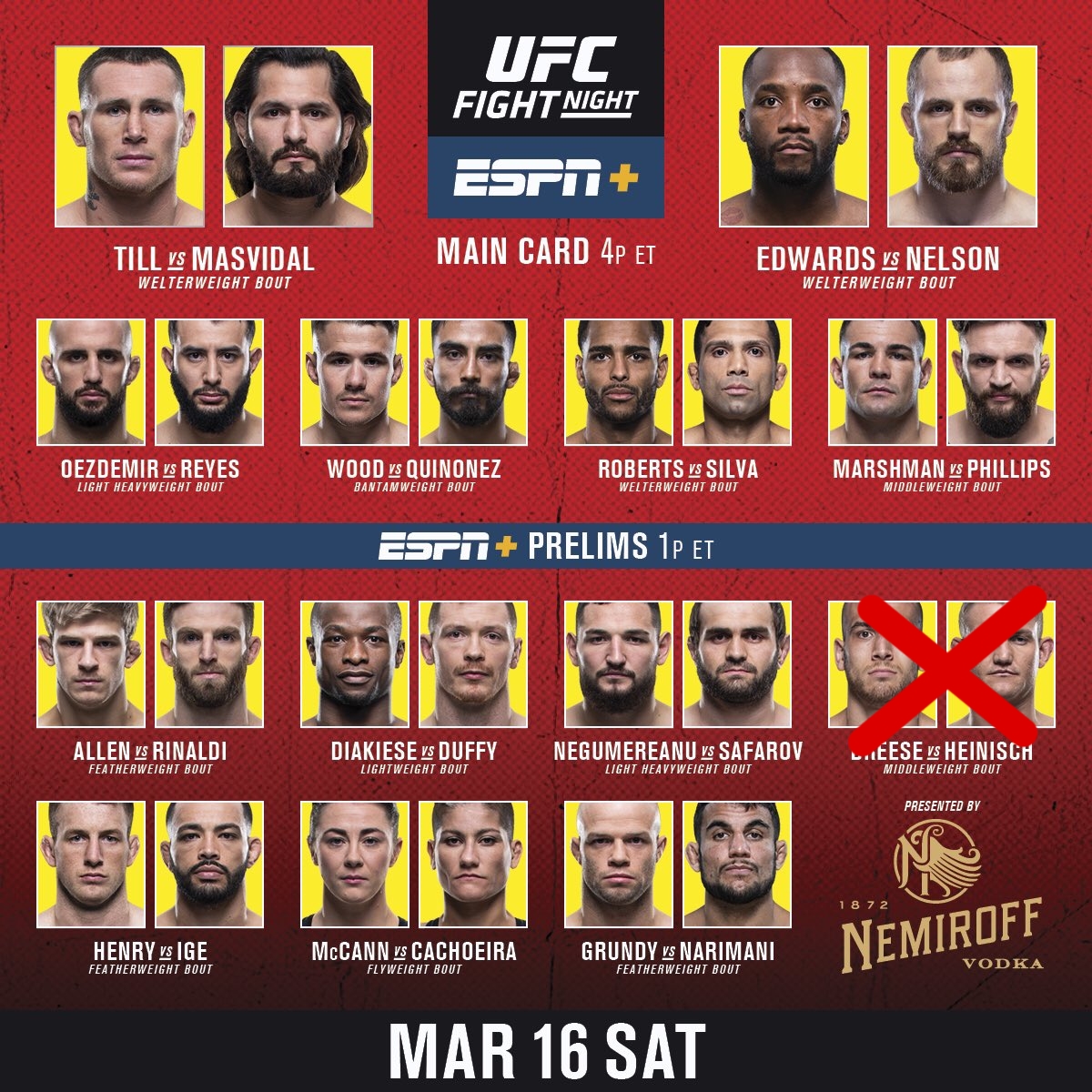 – Jorge Masvidal def. Darren Till via KO (punch) – Round 2, 3:05