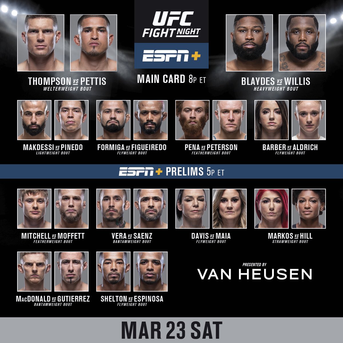 – Curtis Blaydes def. Justin Willis via UD (30-27, 30-26, 30-25).