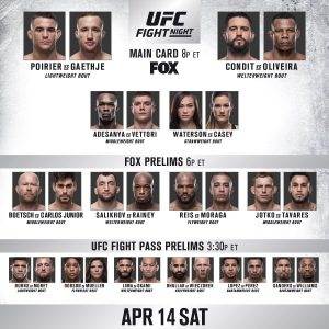 – Dustin Poirier def. Justin Gaethje via TKO (Punches) – Round 4, 0:33.
